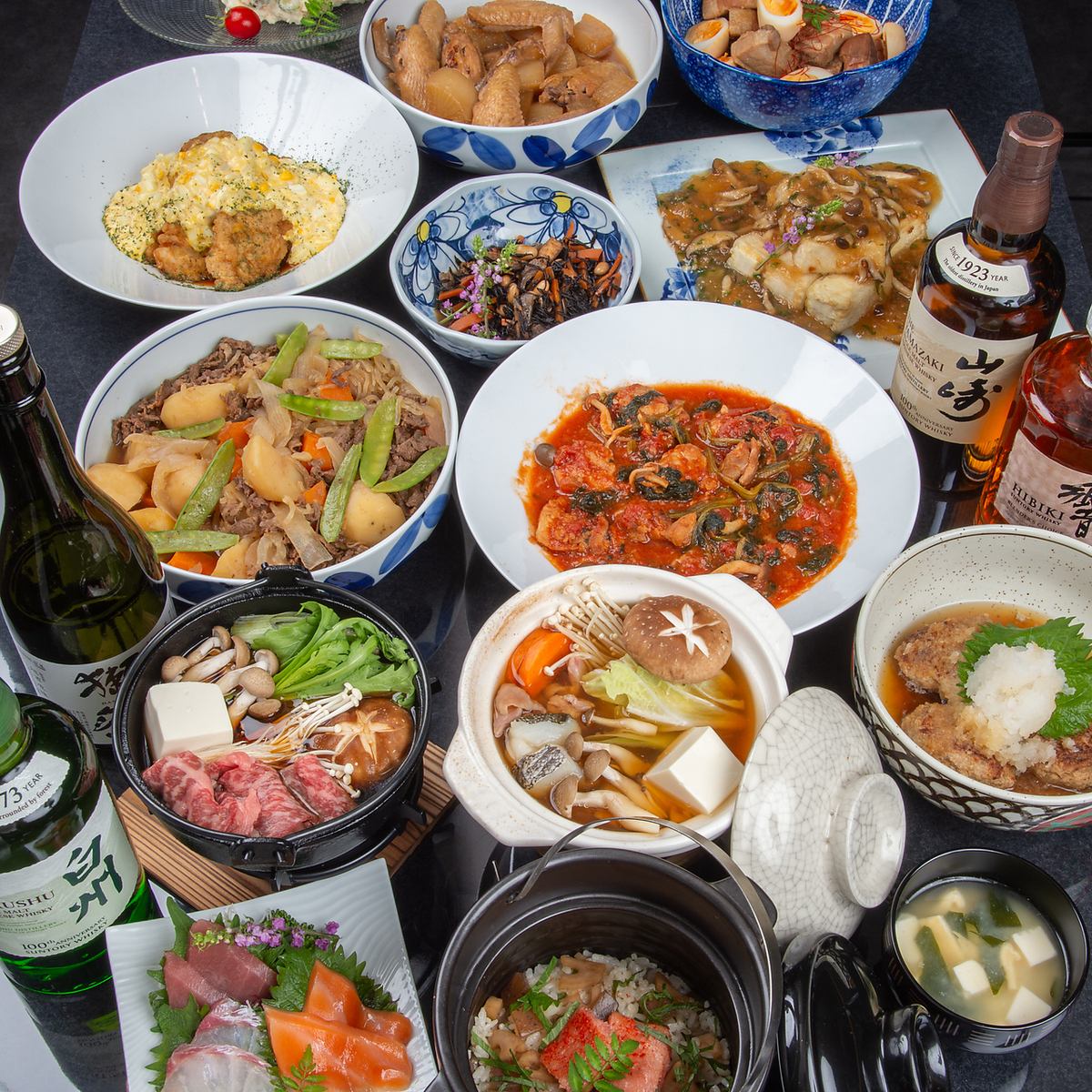 当店の貸切利用は最少8名から最大10名までご利用いただくことができます!全国各地から厳選した焼酎や日本酒とおばんざいだけでなく、中華や洋風なものをご用意しております!ぜひ、団体様のご利用もお待ちしております!